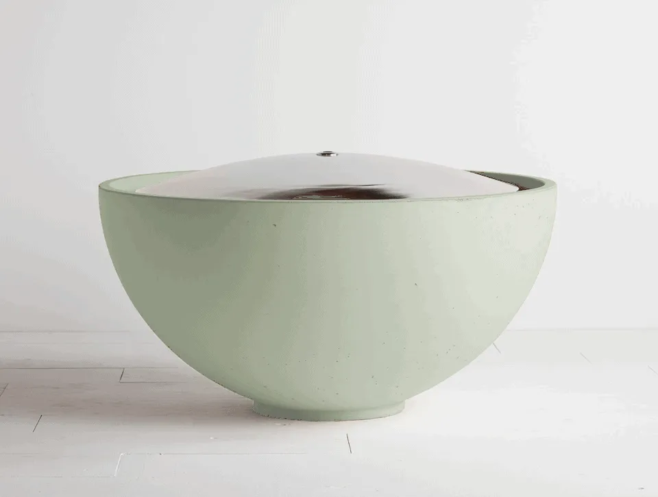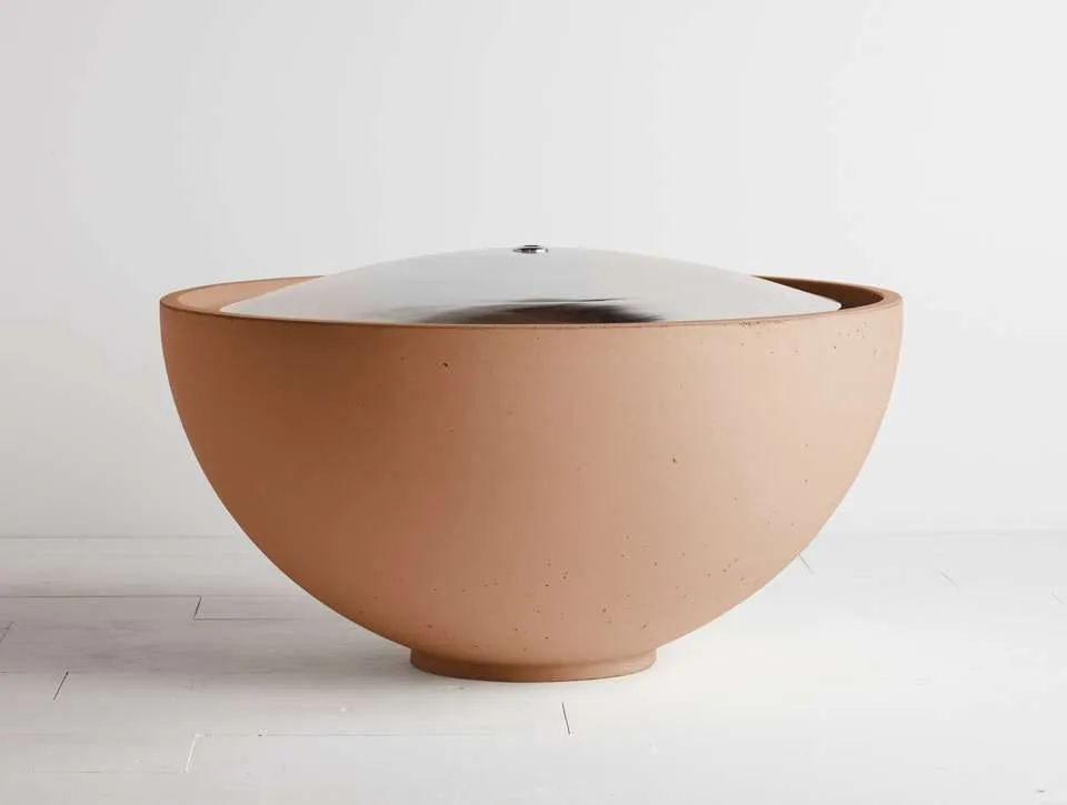 Combining polished metal with handcast concrete these domed water bowls add beauty and tranquility to indoor and outdoor environments.