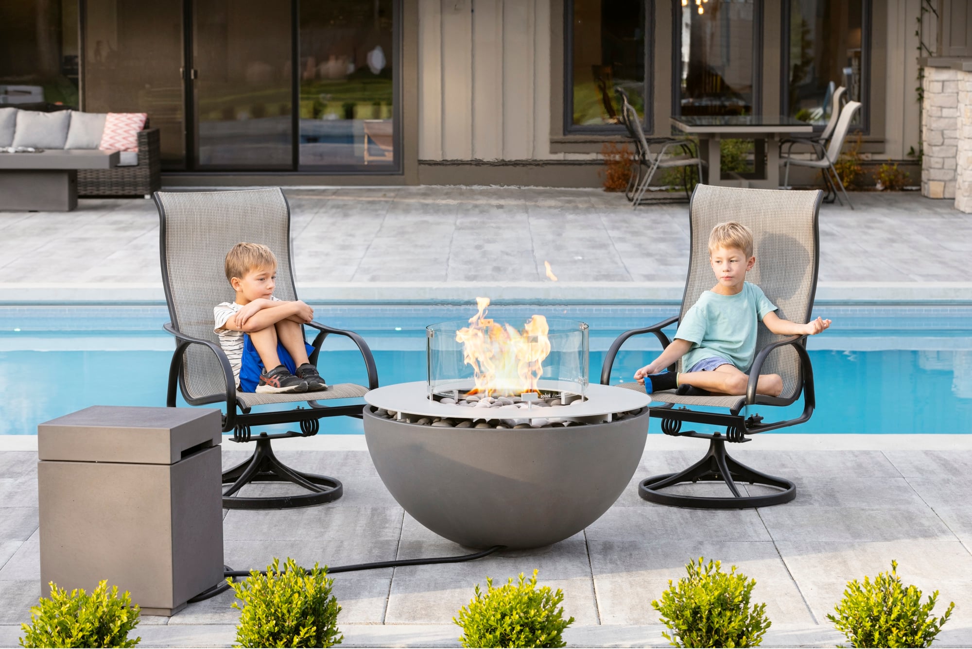 Hemi 36 creates an instant gathering place. As the first fire bowl that we developed it holds a special place in our hearts. Its round, generous form shows off the natural beauty of our smooth concrete and provides an inviting, modern focus for residential and commercial environments. Sitting at low table height, its generous flame provides warmth and sculptural interest. Available with burners from 60,000 – 108,00 btus.