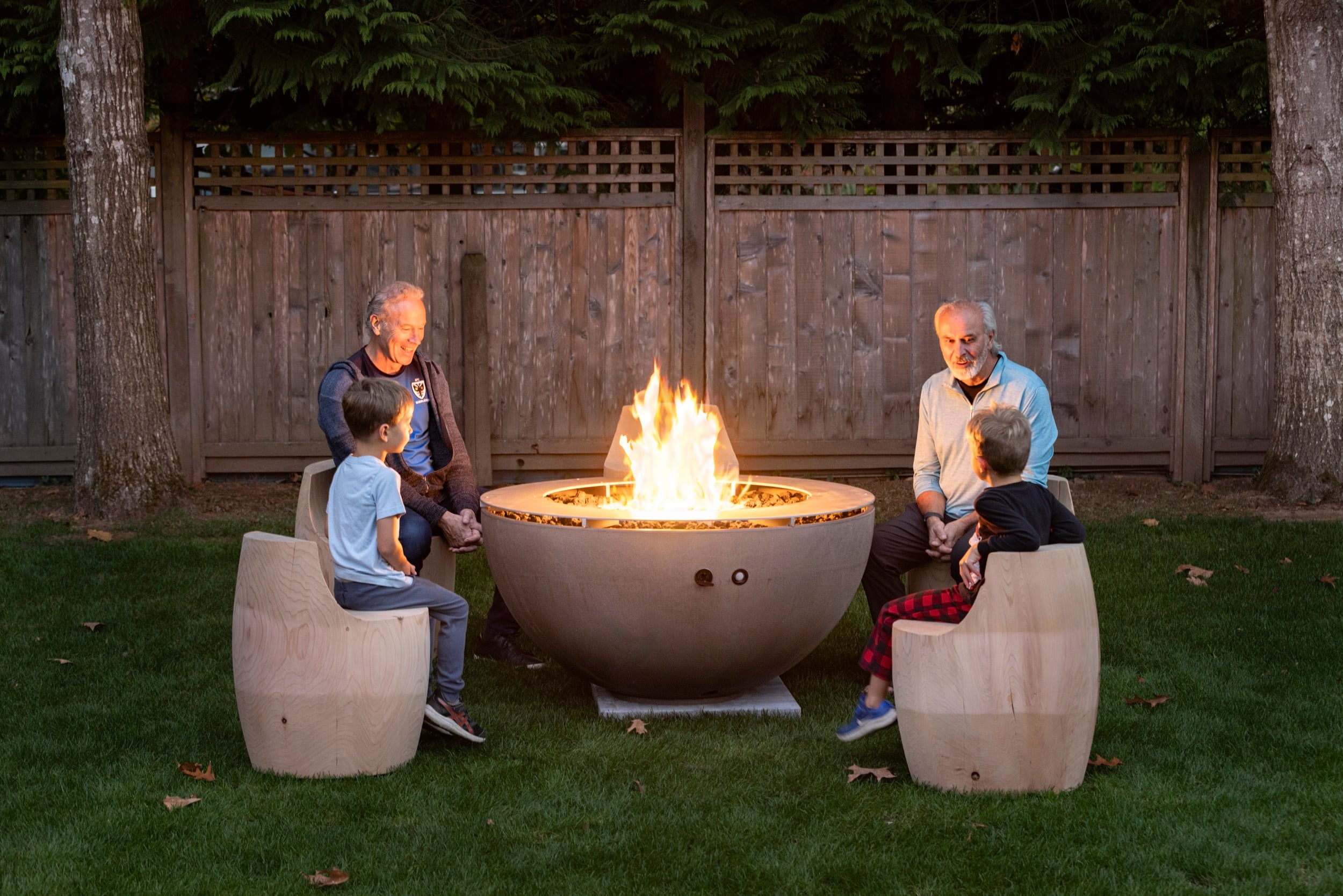 Hemi 36 creates an instant gathering place. As the first fire bowl that we developed it holds a special place in our hearts. Its round, generous form shows off the natural beauty of our smooth concrete and provides an inviting, modern focus for residential and commercial environments. Sitting at low table height, its generous flame provides warmth and sculptural interest. Available with burners from 60,000 – 108,00 btus.